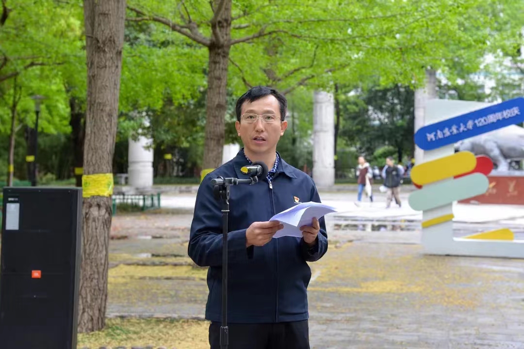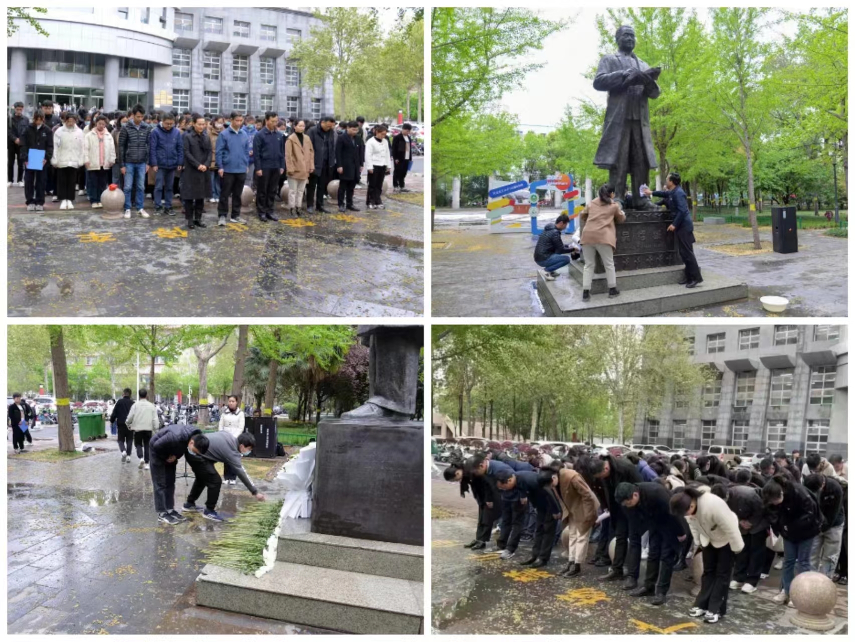 师生代表在文化路校区工程楼吴老铜像前举行“缅怀先贤 勇毅前行”主题党日活动。斗鱼直播