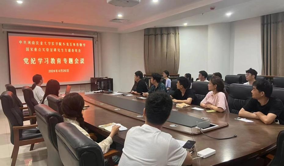 小麦玉米作物学国家重点实验室研究生党支部于在第一实验楼南422召开党纪学习教育主题党日活动。此次活动由党支部书记2021级农艺与种业班杨留洋主持,支部党员(含预备)、入党积极分子20余人参会。此次活动的主要内容为学习新修订的《中国共产党纪律处分条例》。