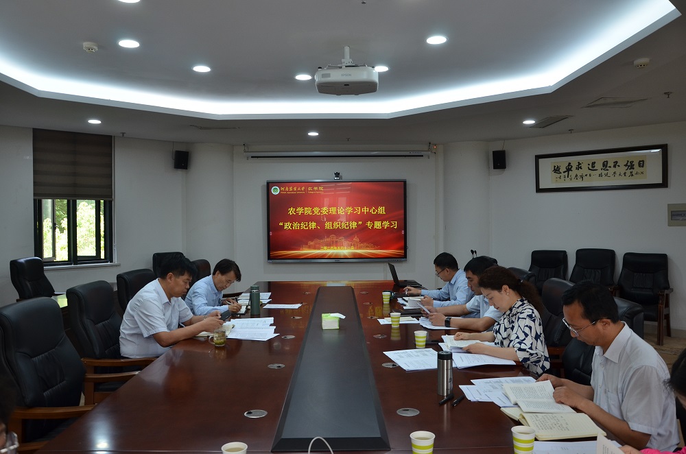 本网讯(通讯员 李盼)根据学校党纪学习教育安排,5月12日,院党委理论学习中心组围绕“政治纪律、组织纪律”在第一实验楼南222党建活动室进行集体学习研讨,进一步增强严守政治纪律和组织纪律的自觉性。在郑院领导和院党委委员参加会议。会议由院党委书记贾磊主持。