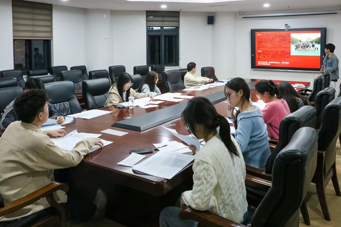于龙子湖校区第一实验楼南201和222教室开展2025年上半年本科拟发展对象面试答辩工作。院团委副书记唐朝、院团委辅导员杨航、学生党支部书记和委员、团支部委员代表担任此次面试评委。