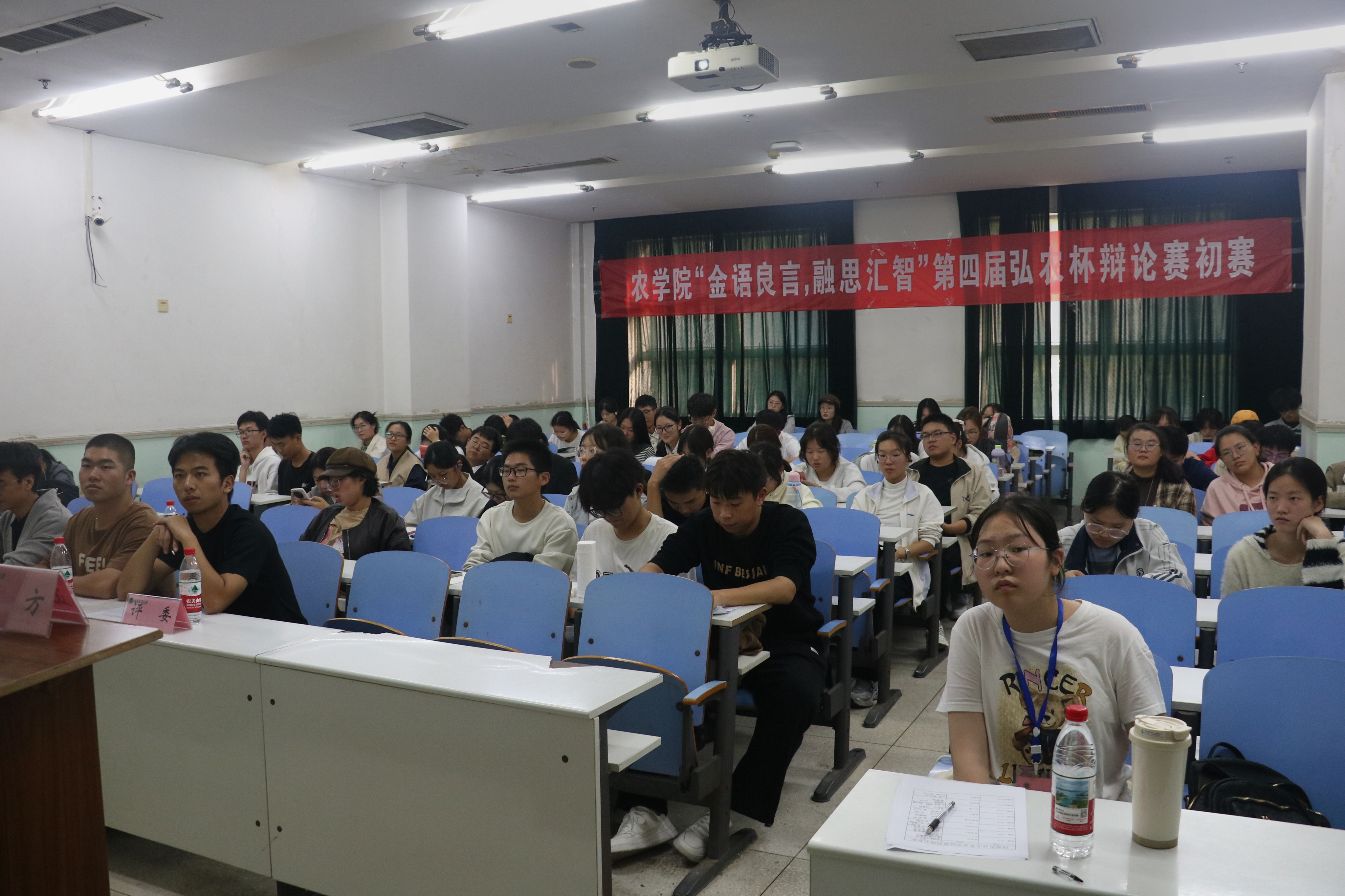 于文化路校区工程楼305举行“金语良言,融思汇智”第四届弘农杯辩论赛。2025级部分学生参加比赛,本次比赛由斗鱼直播