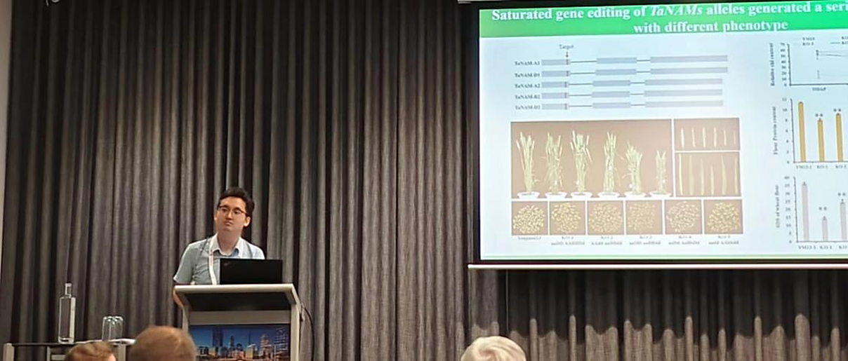 会上,王道文团队姬祥教授做了题为“CRISPR/CasΦ2-mediated gene editing and base editing in wheat and rye”的专题报告,介绍了CRISPR/CasΦ2介导小麦与黑麦基因组编辑技术的新进展及其在小麦优异性状改良中的应用,并同与会专家深入交流讨论了基因编辑相关领域的最新进展和国际前沿,其他参会教师均利用墙报展示了各自的最新研究进展。