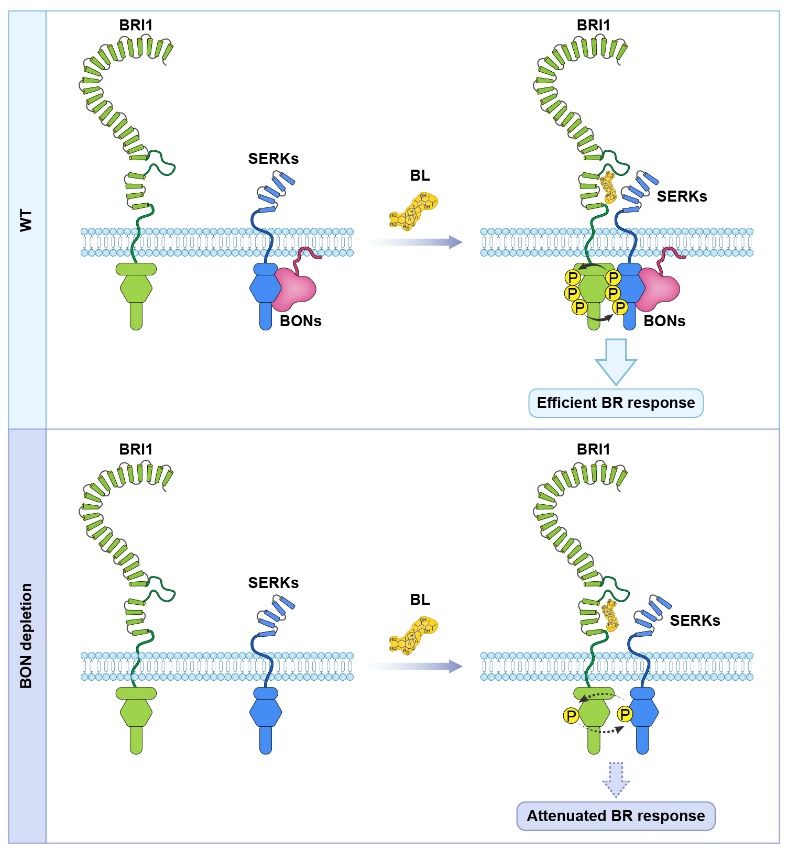 图2:BONZAI参与BR信号通路的机制模型