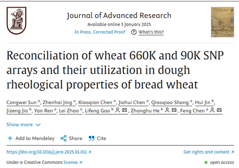 陈锋教授团队联合中国农科院作科所何中虎、高丽锋团队,在国际著名学术期刊Journal of Advanced Research(IF=11.4)在线发表了题为“Reconciliation of wheat 660K and 90K SNP arrays and their utilization in dough rheological properties of bread wheat”的研究论文。
