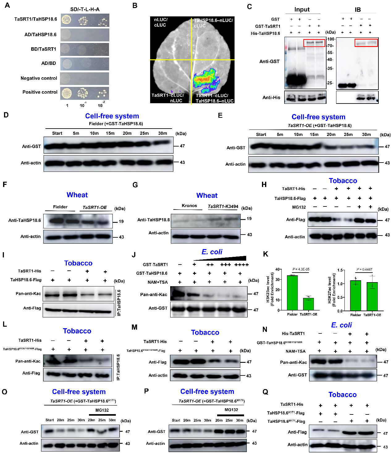 图2 TaSRT1通过去乙酰化TaHSP18.6 K171降低其蛋白积累