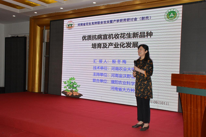 殷冬梅介绍了河南省花生良种联合攻关已取得的阶段性研究成果,重点从花生农艺性状的遗传解析、关键基因的克隆、优质新品种培育、高产高效配套栽培技术以及花生产业化等方面做了详细汇报。她表示,研究团队将锚定目标,进一步开展联合攻关、协同创新,实现资源共享和优势互补,助推花生产业提质增效。
