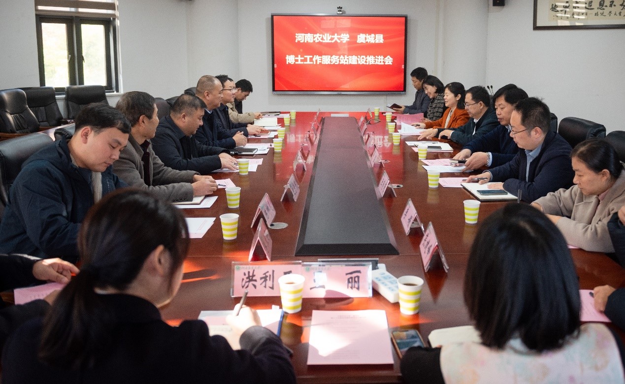 的办学历程,并强调我校高度重视人才工作,长期以来充分发挥人才和科技创新优势,在“产、学、研、用”等方面开展深入校地合作,通过多种方式促进地方经济发展和社会进步。虞城县是我省的农业大县,文化灿烂,历史悠久,农业产业优势明显、特色鲜明。在虞城县挂牌建设博士工作服务站,不仅是双方前期合作成果的升华,更能进一步为服务乡村振兴战略、加快农业强省建设贡献力量。