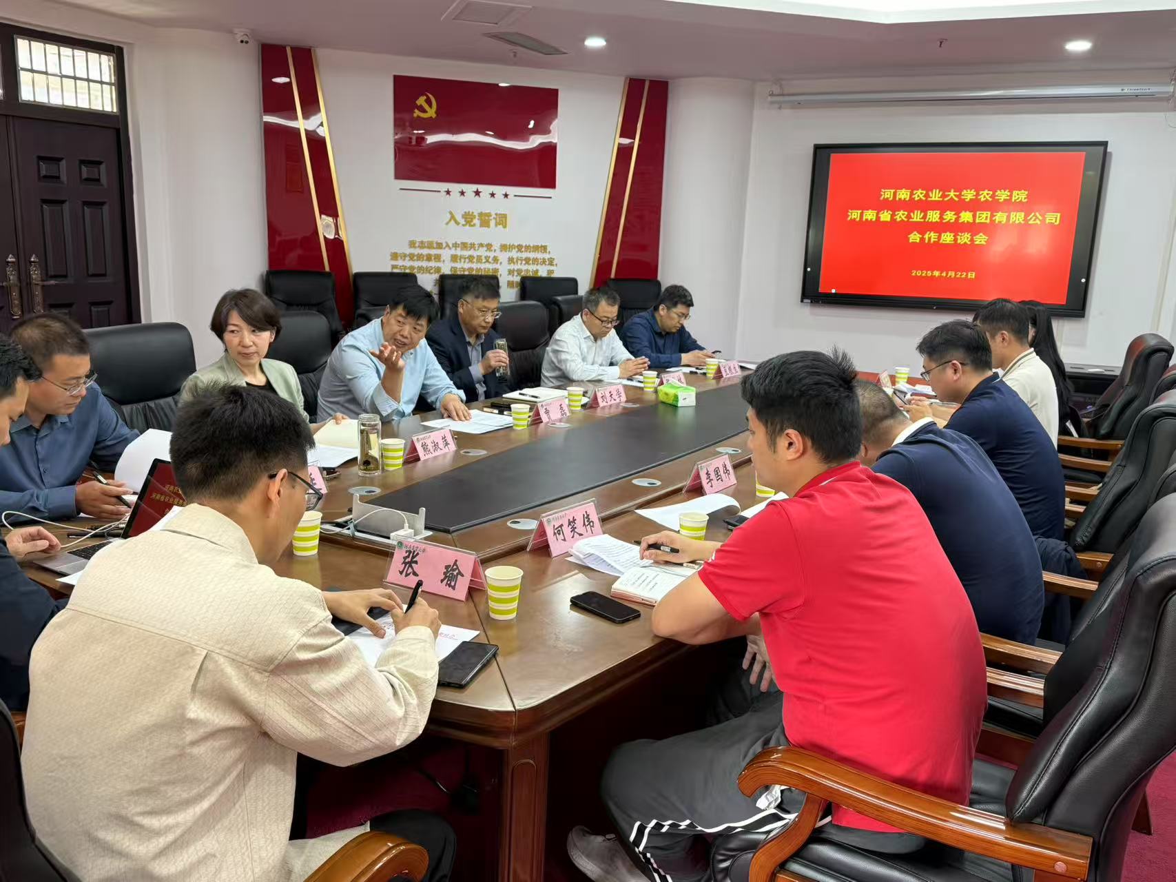 在龙子湖校区第一实验大楼南222会议室召开业务座谈会。河南农服集团副总经理胡军一行与斗鱼直播