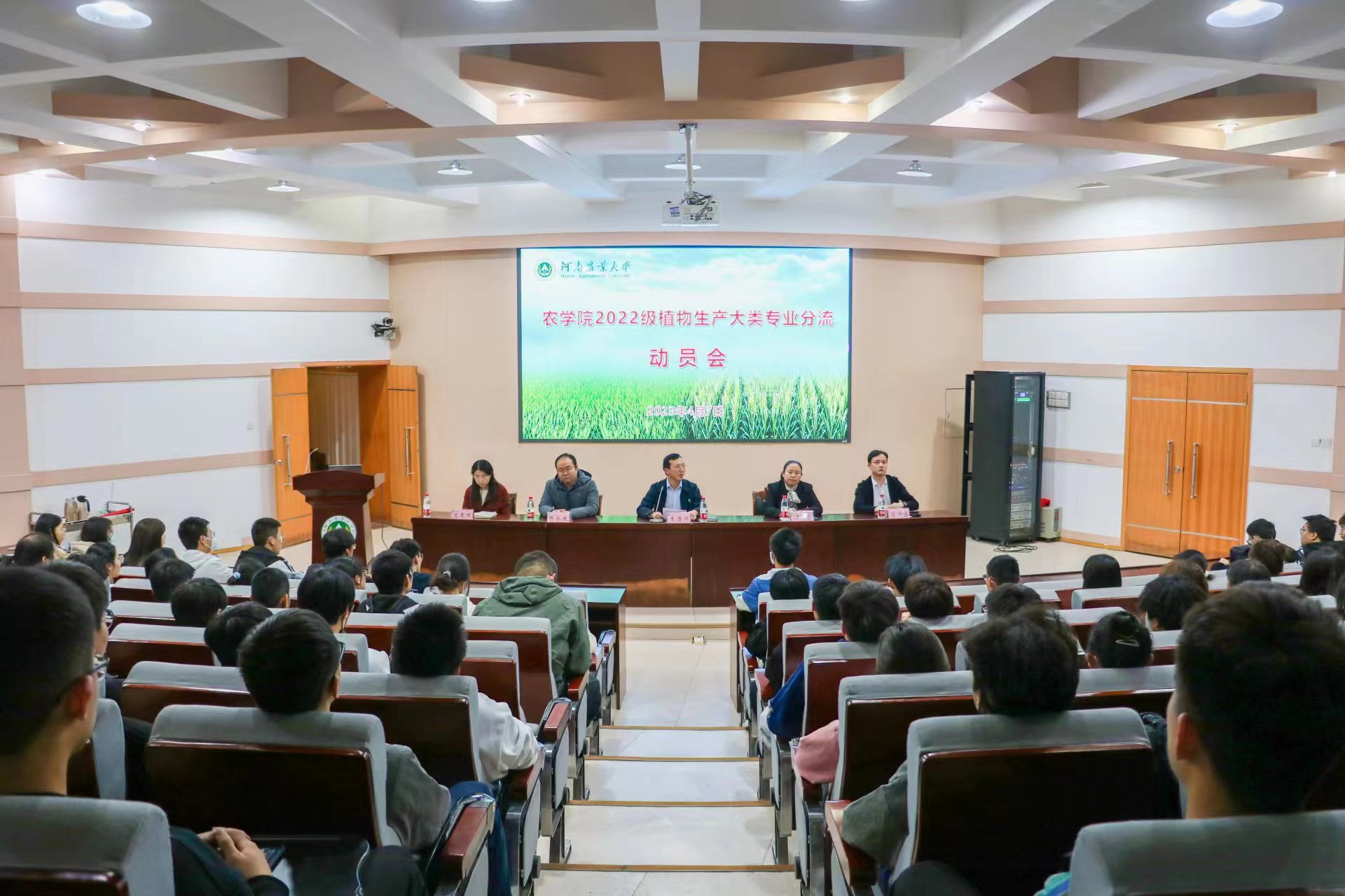 于文化路校区300人报告厅召开2022级植物生产大类专业分流动员会。副院长李浩川,国家自然基金优秀青年基金获得者、作物育种与种子科学系系主任矫永庆,国家玉米产业技术体系岗位科学家、农学系系主任王群,院教学秘书马兴立,院教学干事范晨雨,院团委副书记陈曦冉及2022级植物生产类全体同学参加了此次会议。本次会议由马兴立主持。