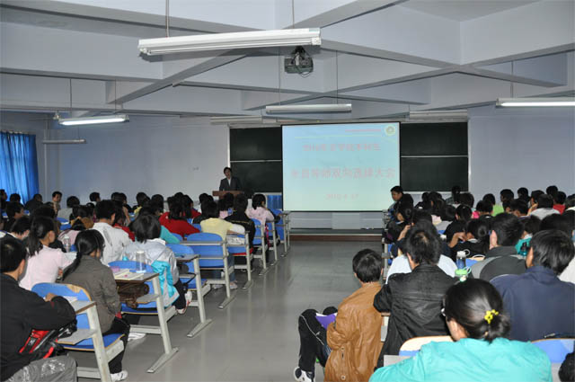 全院导师的目的和意义,向师生们详述了全院导师双向选择的实施方法,要求同学们按照要求,认真填写相关表格。接着,14个教学科研团队的负责人先后向学生介绍自己团队的基本人员构成情况和科研情况,鼓励学生们选择自己的团队,发挥自己的优势和特长,实现自己的理想。台上台下气氛融洽,大会在师生们的热烈讨论中圆满结束