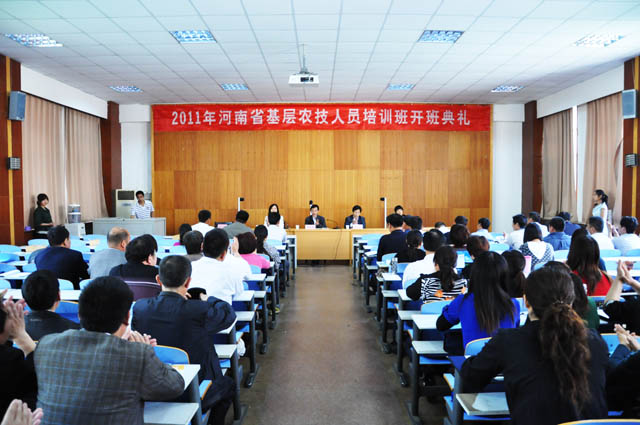 5月12日上午,“2011年河南省基层农技人员培训班”开班典礼在图书馆报告厅举行。地方合作处、斗鱼直播 相关负责人以及来自周口、许昌的100余名学员参加了开班仪式。 作为“2011年河南省基层农技人员培训基地”,今年我校承担了657人的培训任务。本期基层农技人员培训班由斗鱼直播 承办,以小麦栽培技术为主要内容,通过专题讲座、现场实习和参观考察相结合等方式,对学员进行为期5天的培训。 典礼结束后,斗鱼直播 贺德先教授以《小麦高产栽培技术》为题,给学员们上了第一堂课。