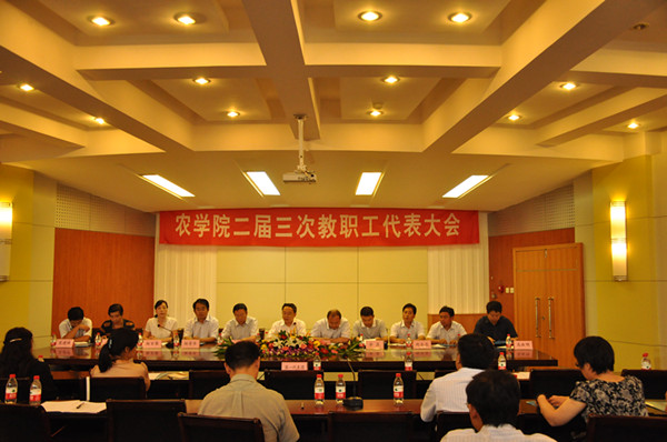 二届三次教代会在校礼堂100人报告厅隆重召开。全体院领导及主席团成员在主席台就座。35名正式代表、10名特邀代表及全体教职工参加。大会由院党总支副书记余磊主持。