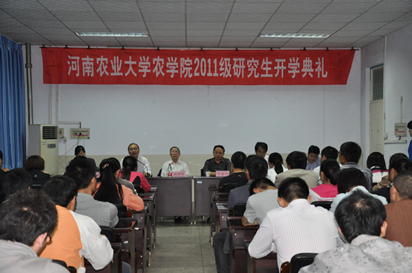 2011级研究生开学典礼在院405会议室隆重举行。学校老领导韩锦锋教授,院党总支书记朱春阳、院长林同保、副院长杨青华、副院长杨百黎、国家小麦工程中心副主任王晨阳、 2011级全体研究生参加了入学典礼。入学典礼由副院长杨青华主持。