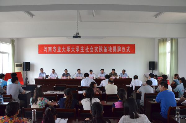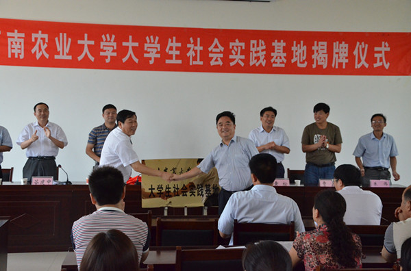 仪式上,林恒志介绍了开封的土地面积、人口规模、主要作物种植等基本情况,展现了开封在农业方面的优势,并对农大学子来开封市开展大学生社会实践活动表示欢迎和支持。褚金海首先介绍了河南农大与开封的历史渊源以及农大近几年取得的成就。他说,河南农大根植于开封、发展于开封,农大的发展与开封有密切的联系,也希望通过大学生社会实践基地的建立加强双方的交流与合作。同时对社会实践队员提出三点要求:要不怕辛苦、深入田间地头学习;在实践中巩固基础知识;学会在实践中运用所学知识。