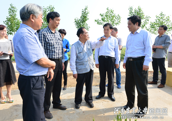 5月8日下午,校长、中国工程院院士张改平赴长葛,查看“2011计划”河南粮食作物协同创新中心现代农业试验区建设情况。河南粮食作物协同创新中心小麦首席科学家、中国工程院院士程顺和,长葛市委书记刘胜利、市长尹俊营,我校和长葛市及豫粮集团有关单位负责人参加活动。