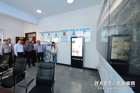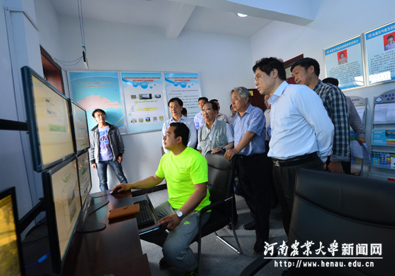 校长、中国工程院院士张改平查看田间实时监控系统运转情况
