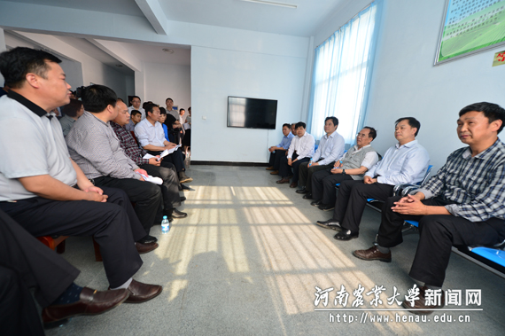 张改平一行先后考察了我校设置在试验区的新品种筛选鉴定试验田、地力提升试验田、超高产攻关田、农机农艺信息三融合技术试验田、水肥一体化技术示范田、节水灌溉技术示范田和物联网信息中心,认真听取有关负责人介绍了当前的麦情及采取的措施,观看了我校长驻试验区的研究生实际操作了物联网信息系统,与当地干部群众及企业负责人进行了座谈。