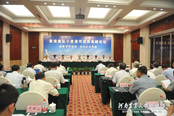 本网讯(记者郭治鹏)8月6日-7日,由我校承办的“黄淮麦区小麦遗传改良高峰论坛”在郑州黄河迎宾馆举行。来自全国各地的顶尖小麦专家“绿城论剑”,探讨黄淮麦区小麦遗传改良方向及其策略,破解育种瓶颈,提升育种水平,为黄淮麦区粮食丰产、保障国家粮食安全建言献策,贡献力量。