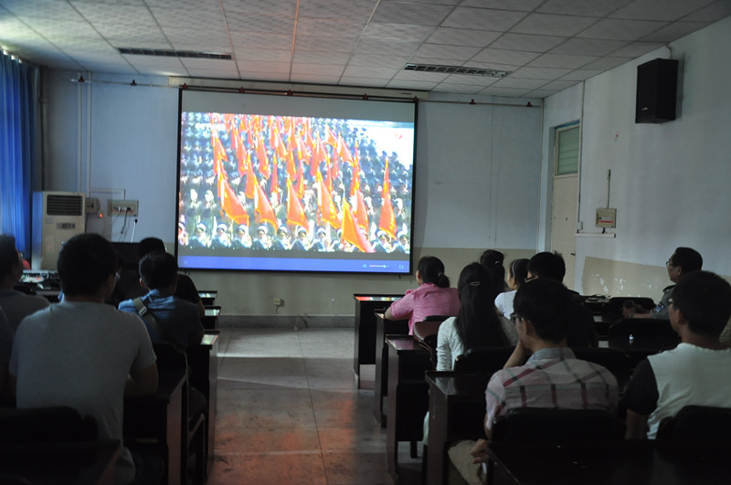 组织师生代表在17号楼405会议室集中收看阅兵仪式直播,引导大学生弘扬抗战精神,激发爱国热情,坚持中国道路,凝聚中国力量,为实现中华民族伟大复兴的中国梦而不懈奋斗。