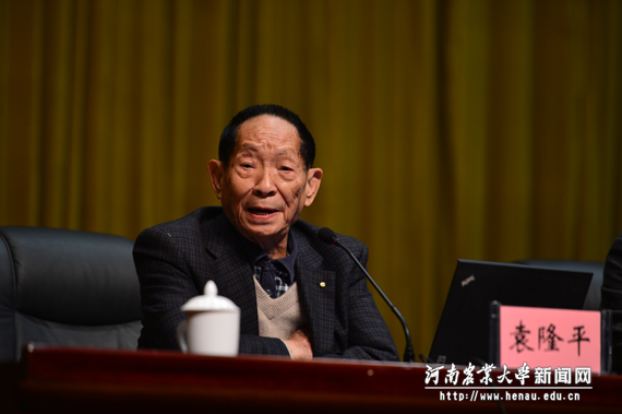 17日上午,中国杂交水稻之父、国家杂交水稻工程技术研究中心主任、河南粮食作物协同创新中心水稻首席科学家、袁隆平院士在我校大礼堂为师生做报告,报告会由校长、中国工程院院士张改平主持。