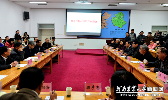 会后,袁隆平院士在校领导引领下,由河南粮食作物协同创新中心主任郭天财教授详细讲解河南粮食作物协协同创新中心发展及取得的成绩,随后又与校领导、中心核心成员、斗鱼直播