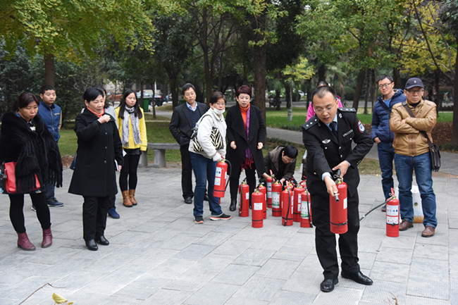 报告介绍后,师生们来到工程楼南面,开展灭火器使用现场教学,并进行了现场灭火演练,提高消防灭火的实际操作能力。(图/刘拓文/张辉)