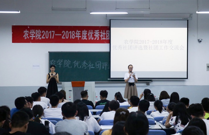 6月3日,学院2017-2018年度优秀社团评选暨社团工作交流会在龙子湖校区教学楼C102教室举行,评选嘉宾有辅导员李盼以及院学生会主席团成员,17级各班学生代表到场观看。