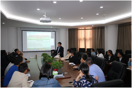 教师、研究生作了题为“Determining Optimum Seeding Date for Canola:From Agronomic Studies to SCI Publication”的学术报告,并就田间试验设计、数据整理分析、SCI论文写作及大田作物栽培生理研究热点等问题与师生进行了广泛而深入的交流和探讨。报告会由斗鱼直播