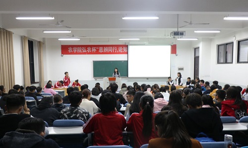 弘农杯“思辨同行,论知天下”辩论赛在龙子湖校区教学楼C202圆满结束。此次比赛由院学生会学习部承办,学院团委辅导员李盼、院学生会相关负责人担任评委。2018级部分学生观看比赛。