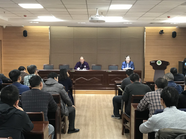 在新校区第一实验大楼南321学术报告厅召开全院教职工大会,就2019年全国硕士研究生招生考试进行安排动员,会议由林同保院长主持。