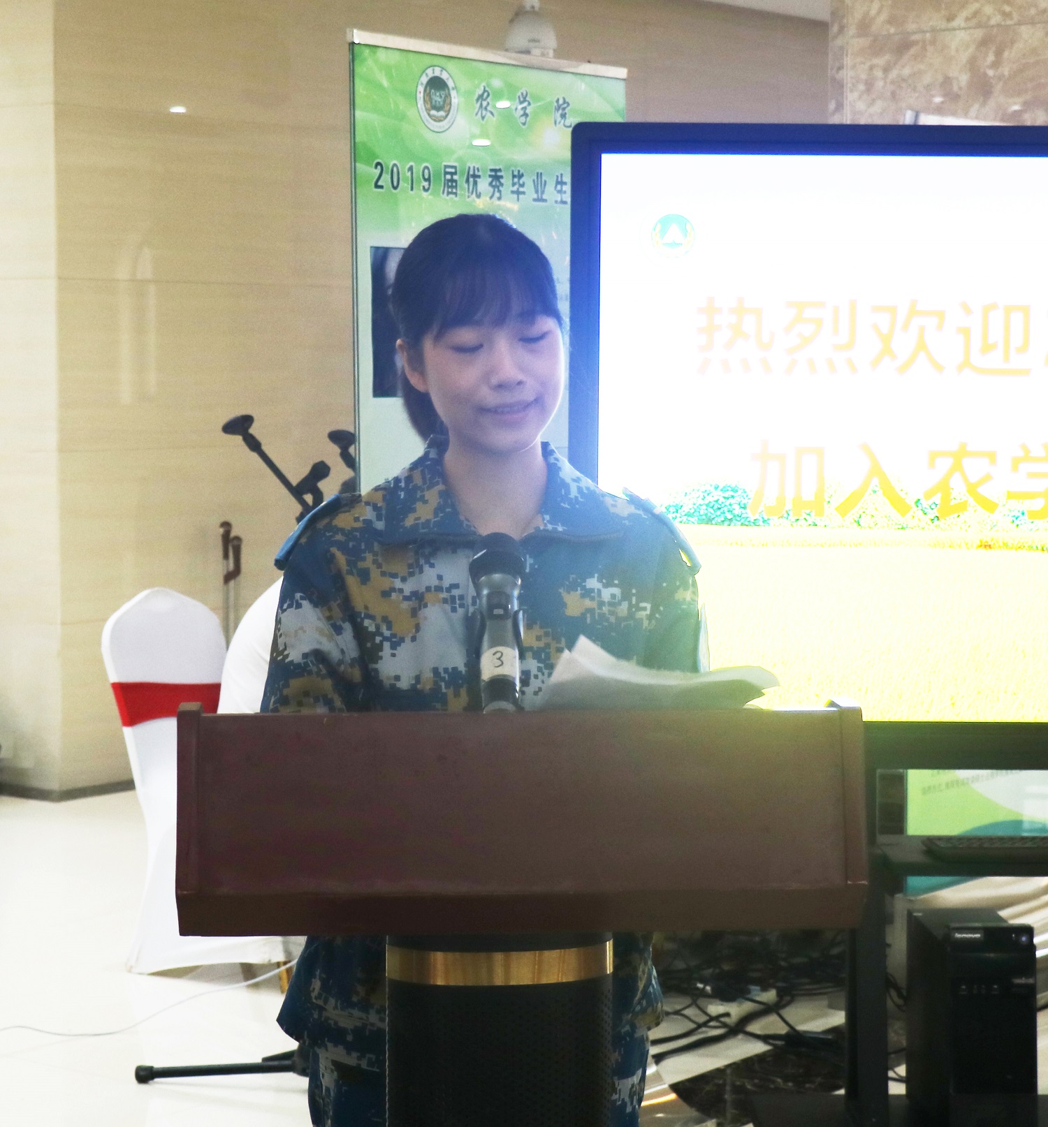 新生代表2019级农学三班王品同学在典礼上畅谈自己对农的憧憬与梦想。恰同学少年,风华正茂。王品呼吁同学们站在大学的新起点,面对机遇和挑战并存的新环境,不仅要持续强化理论学习,掌握现代化农业知识和技术,更要深入实践做到知行合一,努力做一名懂农业、爱农村、爱农民的农院人。