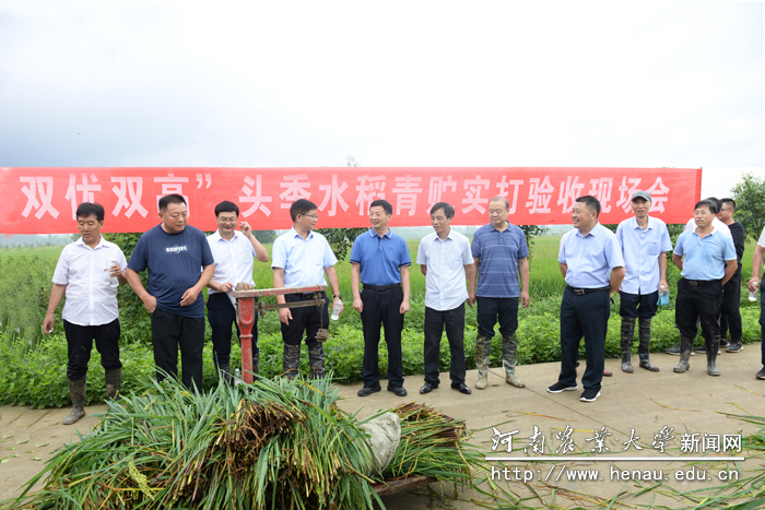 赵全志教授介绍,河南水稻常年种植面积近1000万亩,近年豫南稻区再生稻发展非常迅速,目前已经发展到40多万亩,但由于头季稻灌浆期处于高温时期,稻米品质相对较差,而再生季后期积温相对较少而产量较低。水稻粮饲“双优双高”示范试验项目,通过提前收割头季水稻青贮作饲料,能够有效解决7-8月份畜牧业饲料短缺问题;再生稻的根系活力和再生能力增强,能够解决再生稻产量低的问题,从而增加稻米产量,提供优质稻口粮。(文/ 李俊周)