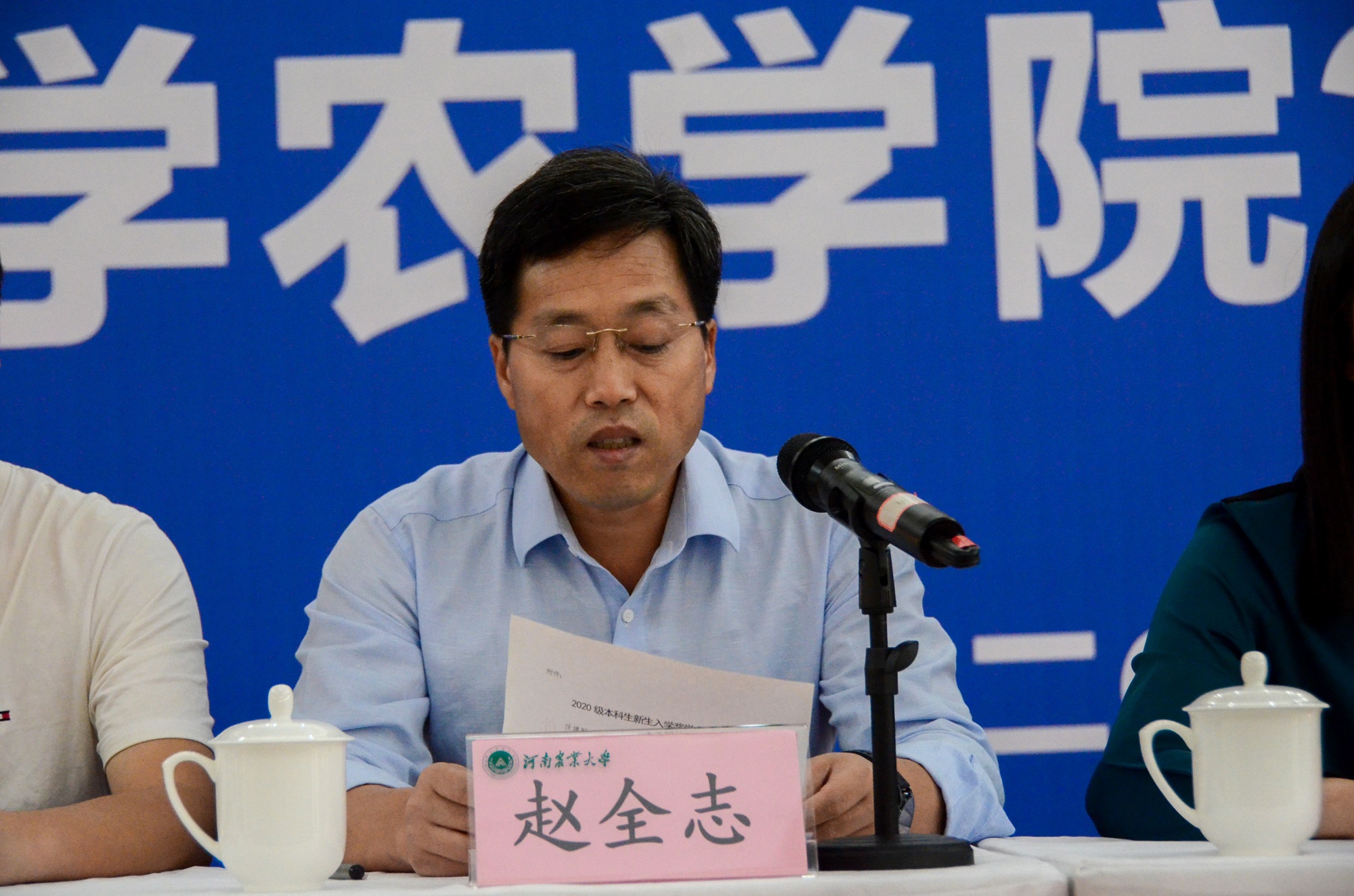 赵全志宣读《关于颁发2020级本科生新生入学奖学金的决定》和《关于颁发2020级研究生新生入学奖学金的决定》