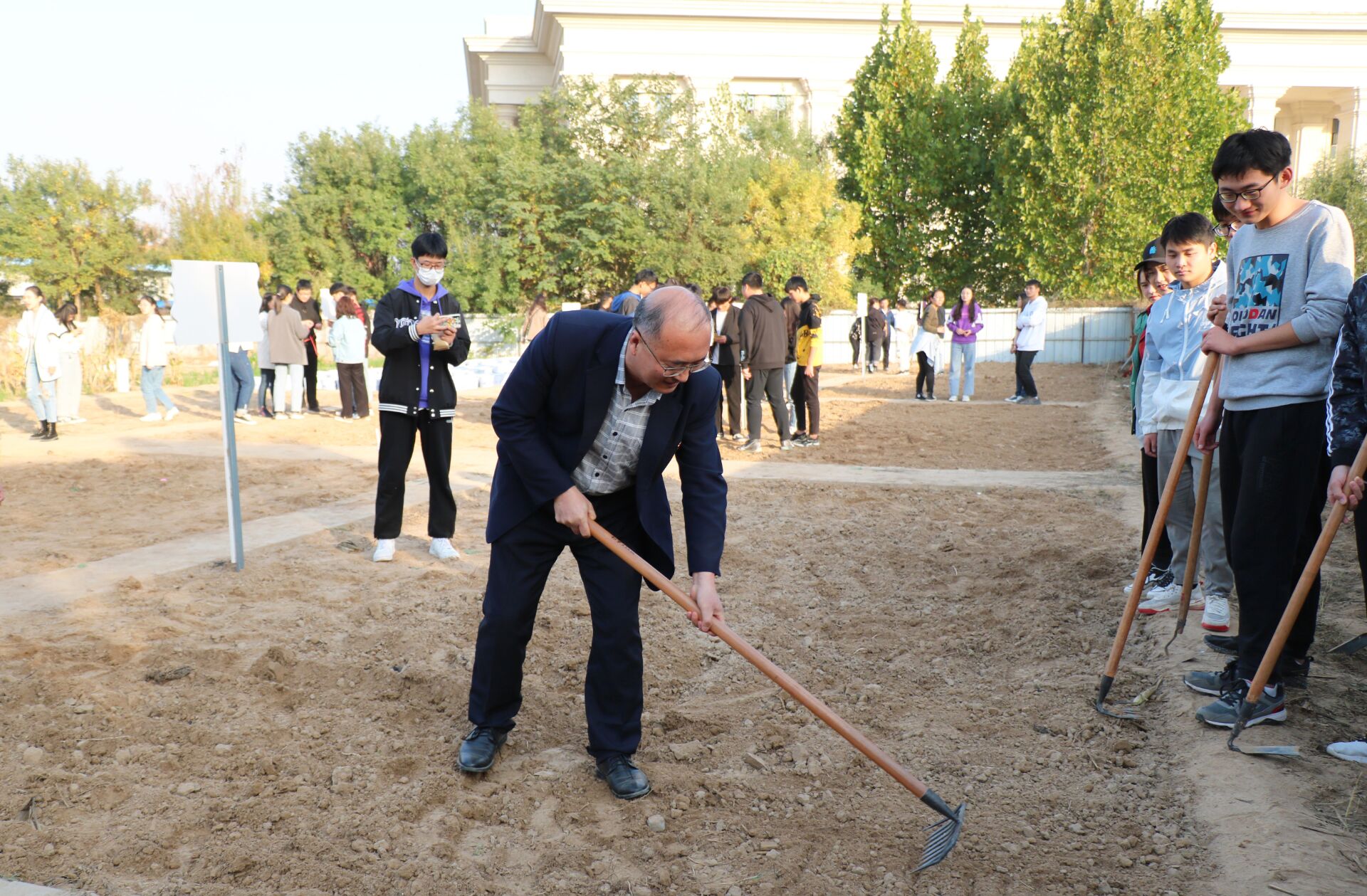 副校长林同保带头参与劳动