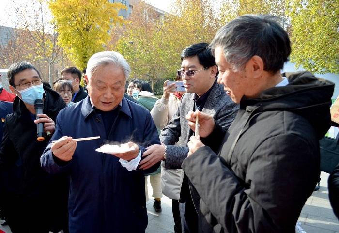 郭天财教授等人品尝优质大米品种