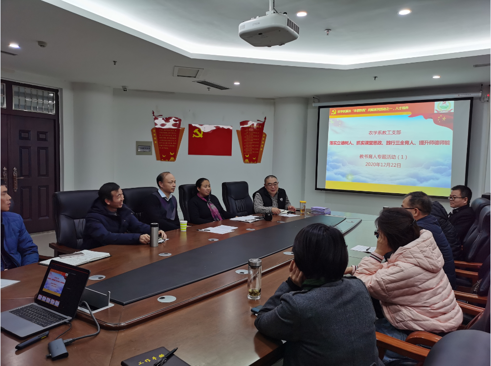 本网讯(通讯员/关小康 王志强 图片/王泳超)12月22日下午,农学系教工支部在龙子湖校区第一实验楼南222以“落实立德树人,抓实课堂思政,践行三全育人,提升师德师能”为主题召开教书育人专题会议,会议特邀请胡彦民教授、程西永副院长和部分学生代表参加,会议由王志强主持。