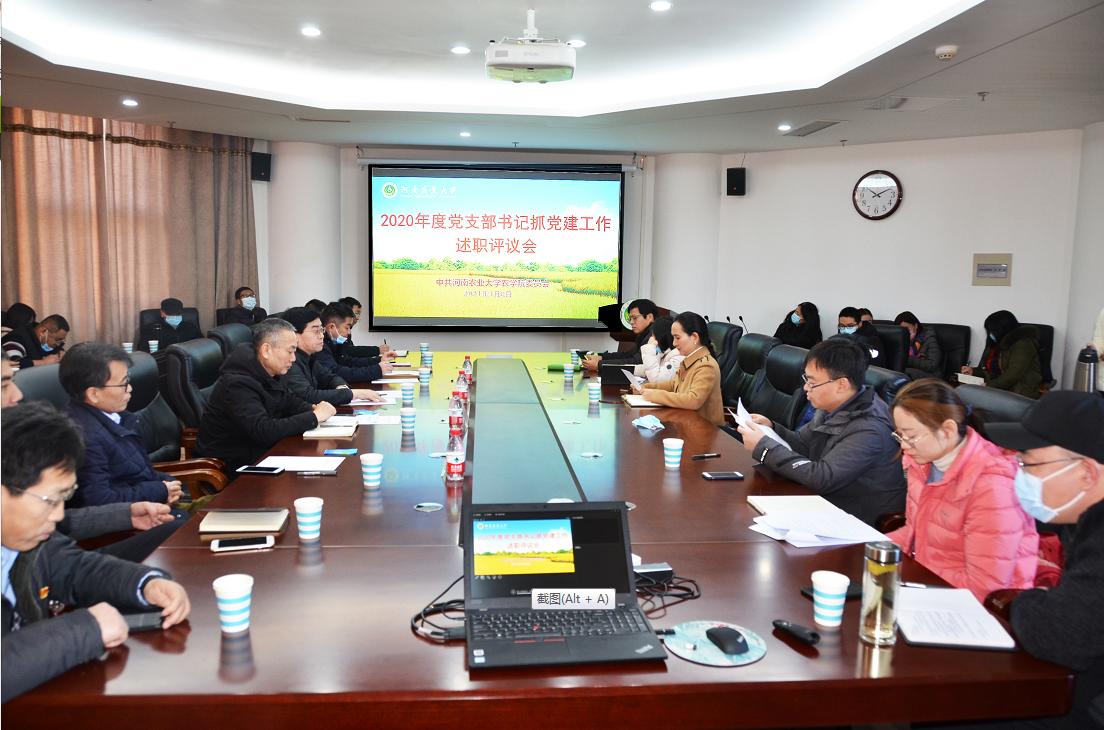 召开2020年度党支部书记抓党建工作述职评议大会。校考核工作组成员宋鸿雁、张勇民,全体学院班子成员、全体党支部书记及党员、群众代表参加评议会。会议由校党委委员、院党委书记郭战伟主持。