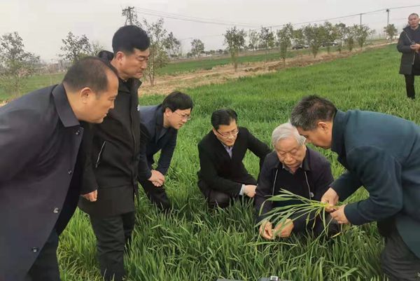 本网讯(通讯员/图片  王永华)3月10-11日,由河南省弱筋小麦产业科技特派员服务团团长郭天财教授带队,副院长李浩贤、杨秋云高级实验师、谢迎新研究员、王永华研究员和王丰青副教授等一行7人到淮滨县开展春季麦田技术指导。座谈会在淮滨县工信局三楼会议室召开。淮滨县政协副主席费勇,工信局副局长鲁付森、程东强参加座谈。