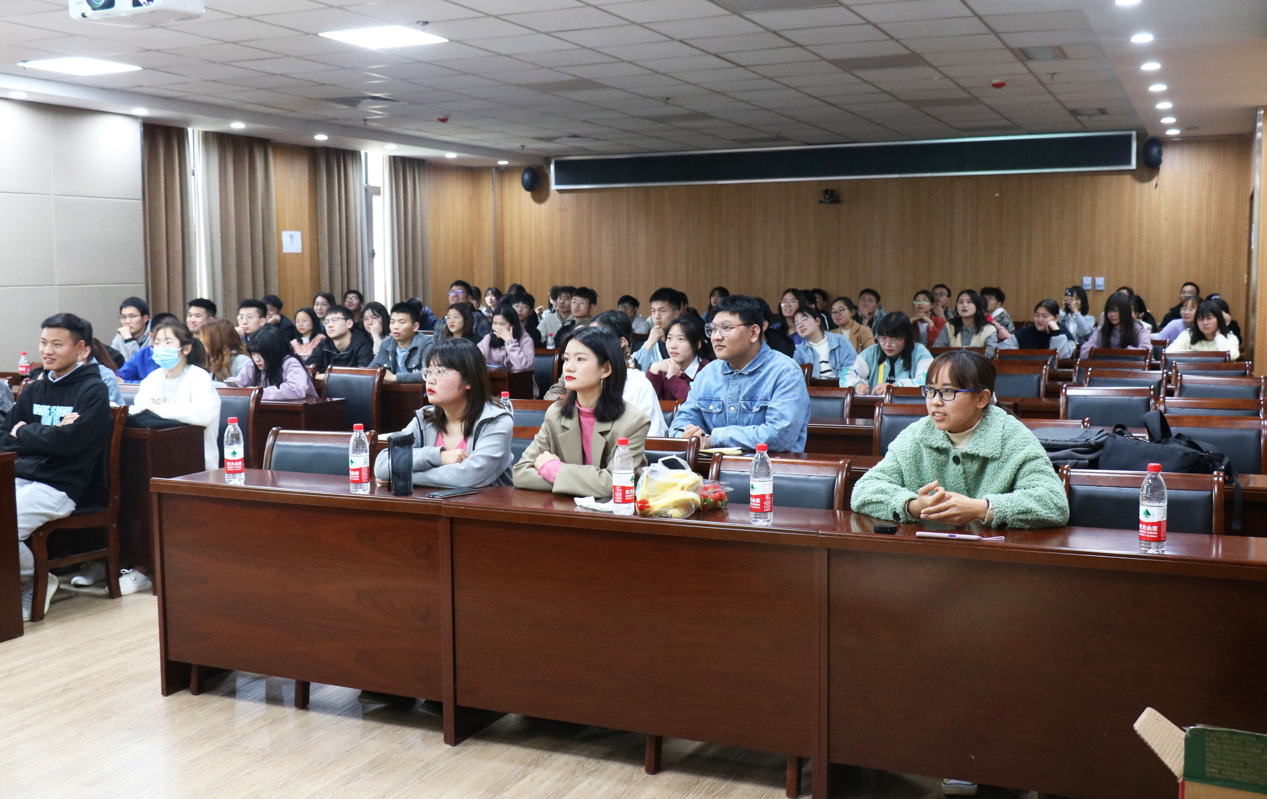 在考研分享会上,2017级的梁家豪、张皖玉、张萍等9名成功考研同学以自己的切身经历向同学们分享宝贵的考研经验,他们从学科选择、专项复习、跨专业考研、自我规划、自制力行动、身体素质、时间安排、复试技巧等方面进行了详细讲述。在交流环节中,备研同学就如何选择考研专业,培训班的选择及其作用,日常考研相关等问题向学长学姐寻求意见建议。发言同学就同学们的不同问题,有针对性的做出回答。交流会现场气氛高涨,同学互动积极有效。