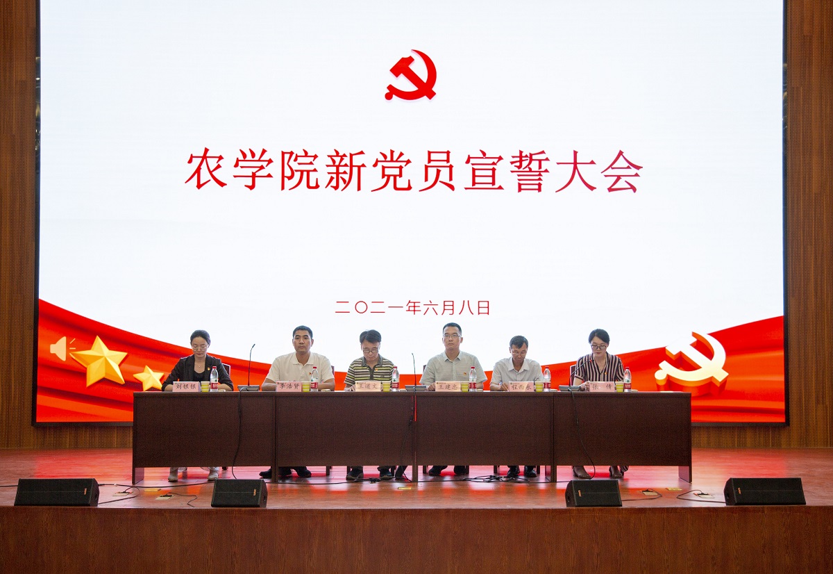 新党员名单》。在院党委副书记王建忠的领誓下,新党员面向党旗,举起右手,庄严宣誓。随后,老党员代表2020级研究生农艺与种业专业许倍铭发言,她表明自己时刻保持党员的先进性,不断提升自身的党性修养,并分享作为学生党员的感受:一是忠心对党、不忘初心、牢记使命。二是注重加强理论学习,全面提高思想政治素质和专业理论水平,在思想上创先争优。三是开拓进取,在行动上创先争优。新党员代表2019级农学一班丁智强发言,他表示将继续加强理论知识和党的最新政策方针的学习,树立优秀榜样,不忘初心,牢记使命,刻苦钻研科学文化知识,把握时代机遇,发扬自强不息的奋斗精神,为党的事业奋斗终身。