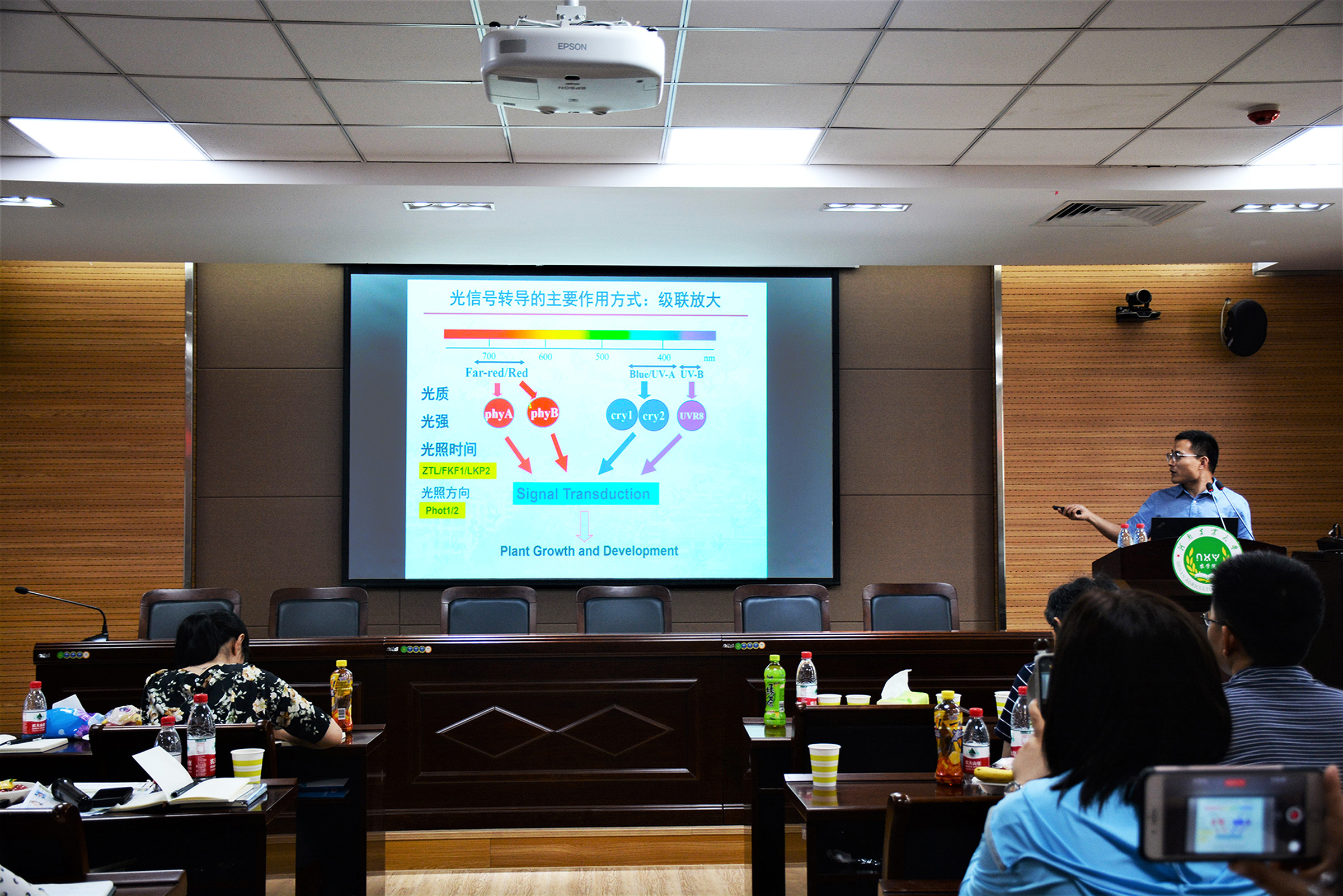 山东农业大学李刚教授以“植物光信号转导”为题,介绍了团队在植物光信号蛋白FHY3的下游调控网络和分子机理的最新研究进展。