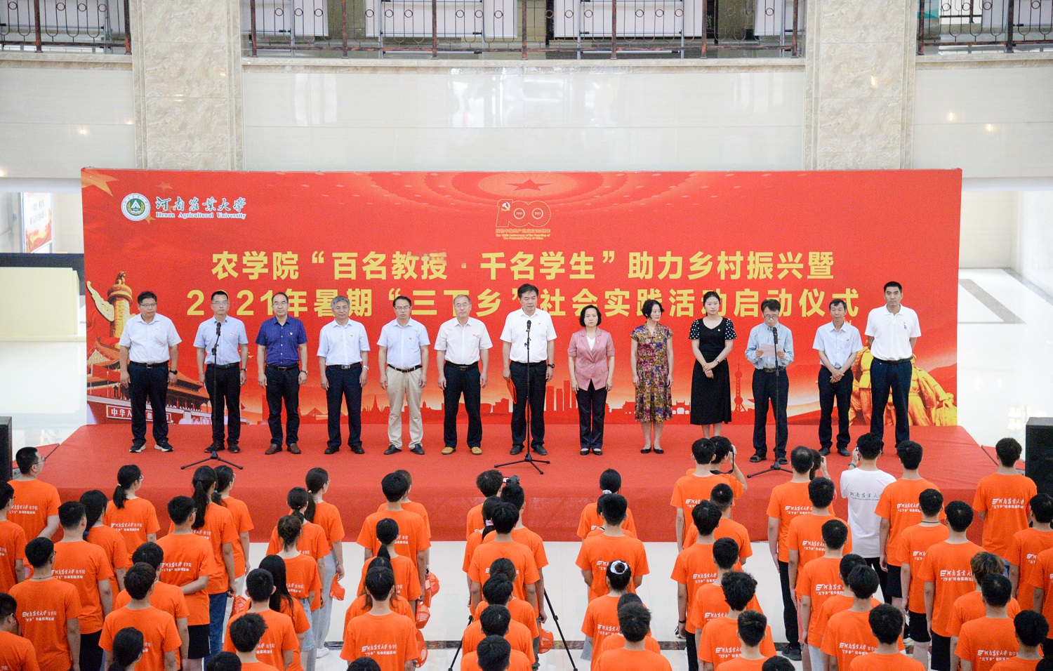 “百名教授 千名学生”助力乡村振兴暨2021年暑期“三下乡”社会实践活动启动仪式。校党委副书记、工会主席李成吾、副校长尹新明、副校长林同保和学校相关职能部门负责人出席了本次仪式,学院领导班子、学院教师代表和学生代表参加了本次会议。