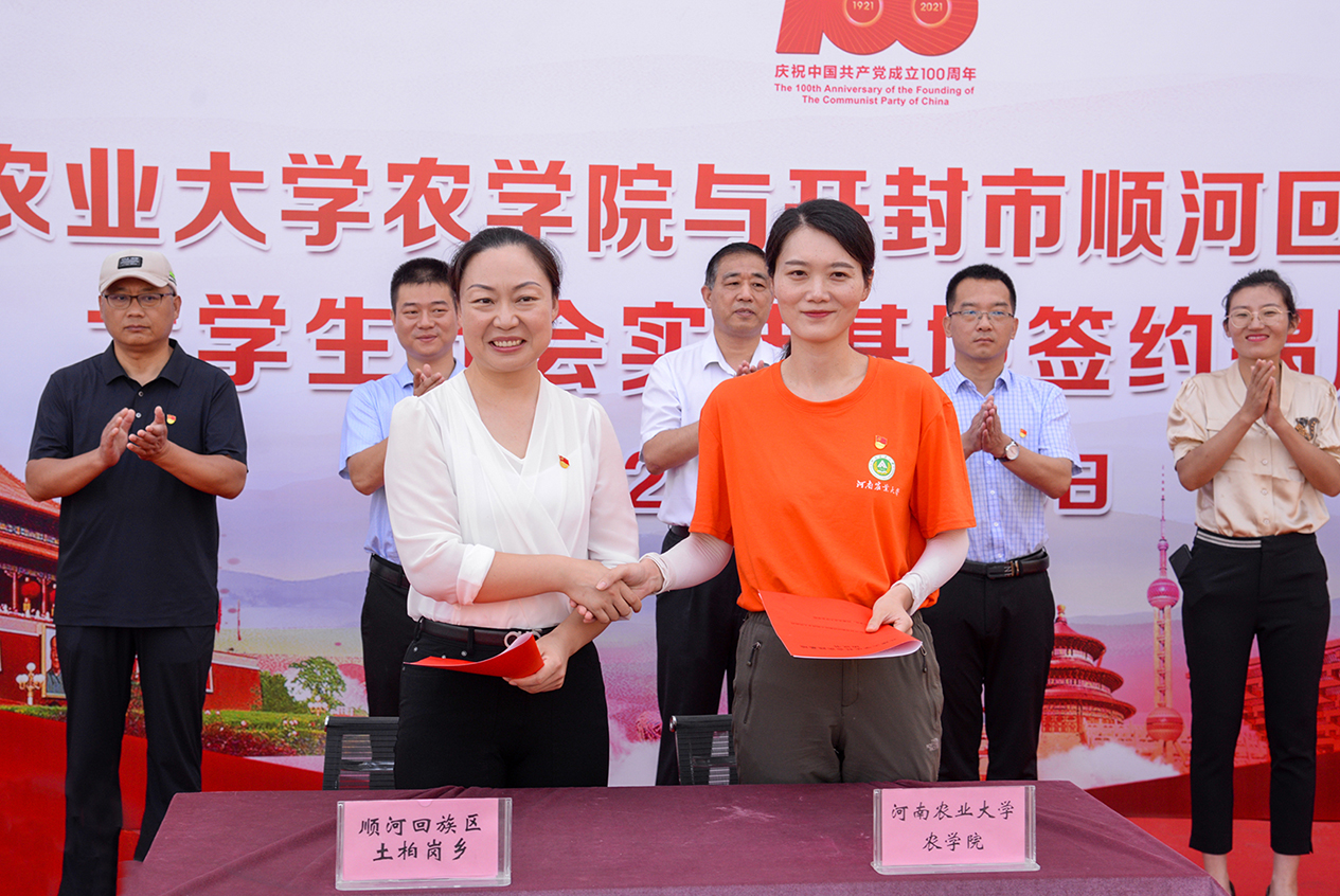 此次活动以我校“百名教授、千名学生”助力乡村振兴暨大学生暑期“三下乡”社会实践活动为契机,在顺河回族区土柏岗乡成立斗鱼直播 大学生社会实践基地。本次政校合作签约具有良好的示范和带动效应,旨为更好实现双方资源共享互补,培养和提高学生实习实践能力,推进学子知行合一、学以致用,使知识理论不断转化为推动“三农”发展,促进乡村振兴的强大动力。下一步,学院也必将进一步构建更加开放、更加多元的实践育人新模式,包括建立联合试验基地等,让学生积极深层次地参与到社区建设过程中,探索形成政府、学校、学生三方互惠联动合作机制。
