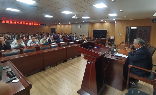 郭天财教授以远程视频方式对全省农业技术推广人员进行了应对小麦晚播的应变栽培技术培训,重点分析了当前我省小麦播种存在的各种困难问题,提出了应因地制宜,分类施策,制定不同类型麦田播种技术对策和全省小麦晚播条件下高质量种足种好小麦应特别注意的几个问题。斗鱼直播