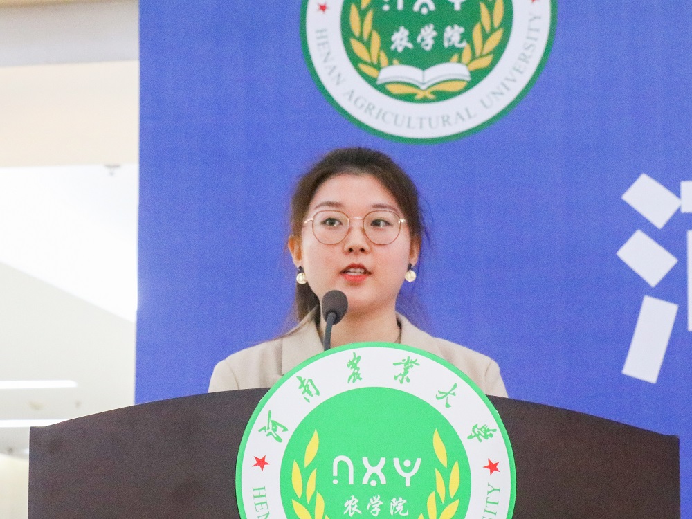 研究生新生代表、2021级作物学专业硕士研究生张皖玉同学发言。他激励同学们要明确目标、自主创新、博采众长、厚积薄发,把希望的种子深埋在农大这块科研的沃土之中。