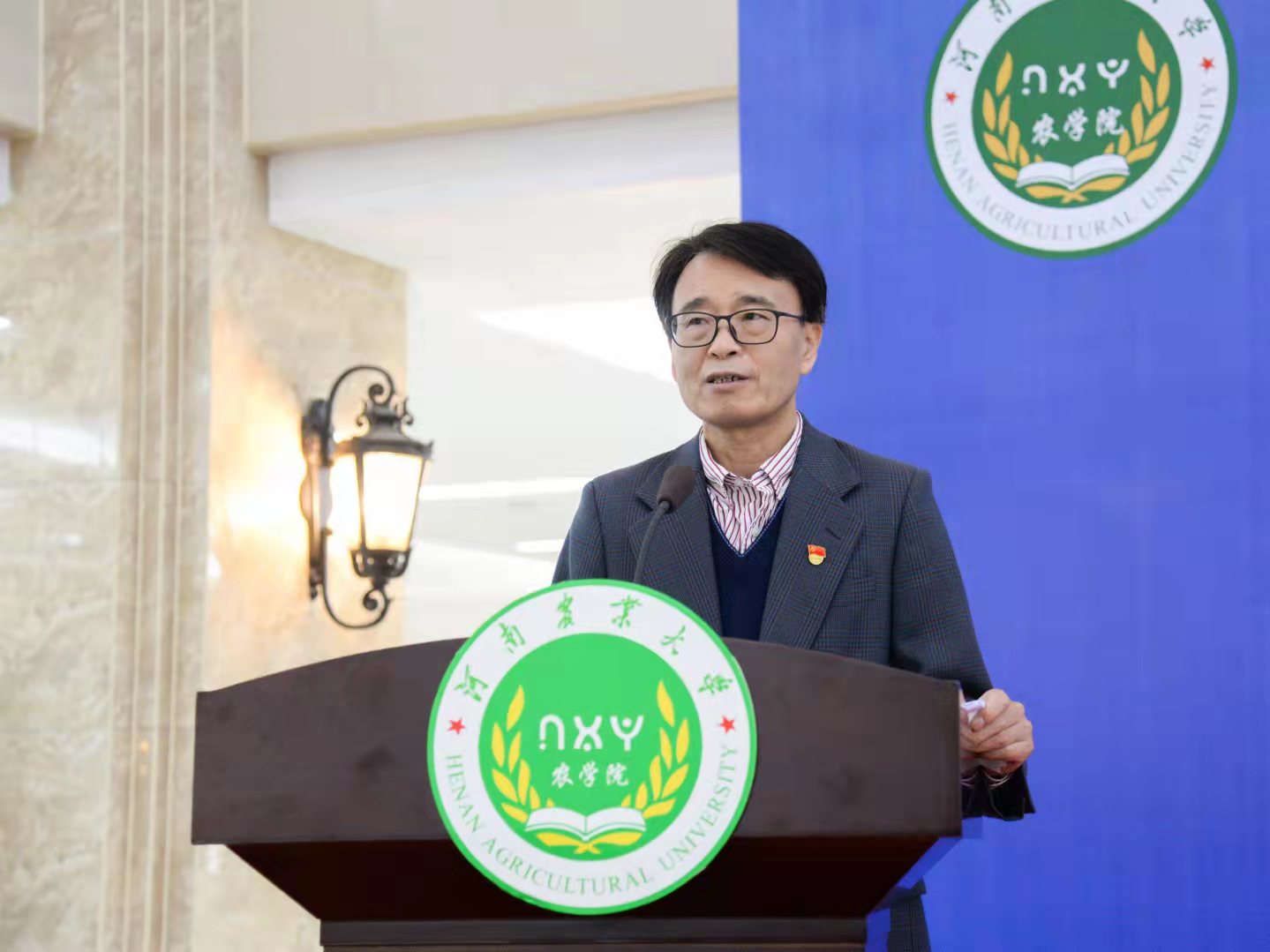 学术副校长、院长王道文讲话。他首先对2021级新生的到来表示热烈的欢迎和衷心的祝贺。他向全体新生介绍了学院发展历史和现状,重点讲述了学院近年来在教育教学、学科建设、科学研究以及人才培养等各方面取得的主要进展。他鼓励全体新生要珍惜机遇,用汗水浇灌梦想,用奋斗点亮青春,在人生最宝贵的阶段取得优异的成绩,续写“农大精神”,成就人生华章。