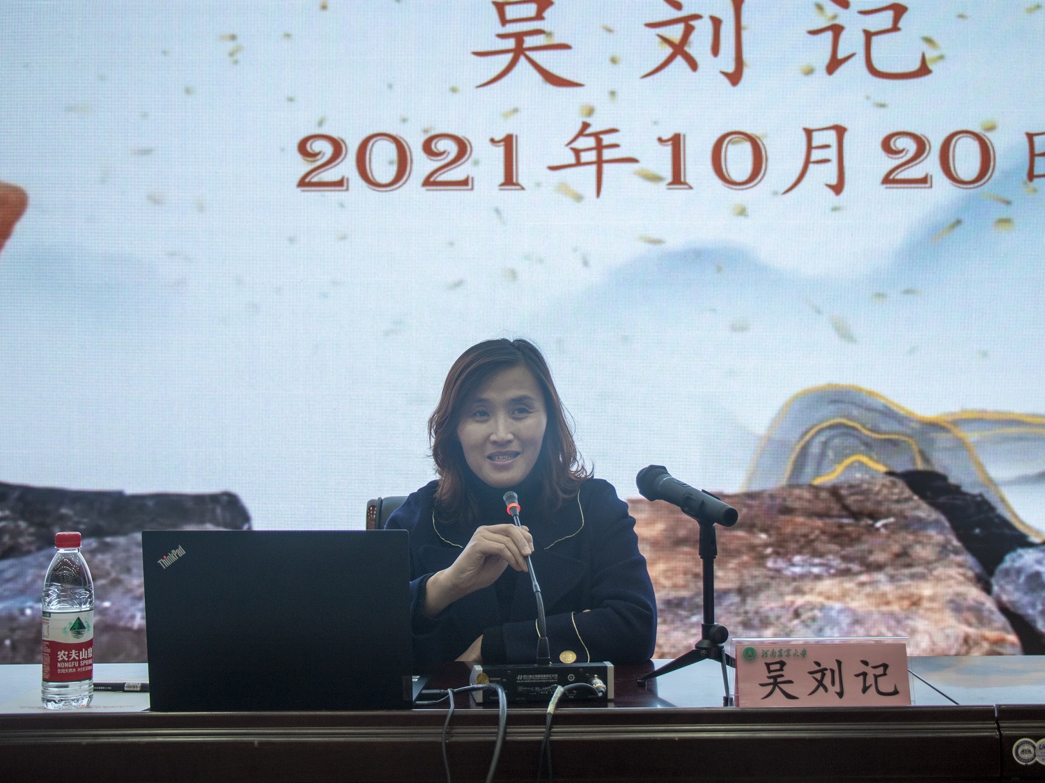 教授吴刘记主讲,2021级全体新生参加了此次报告会。