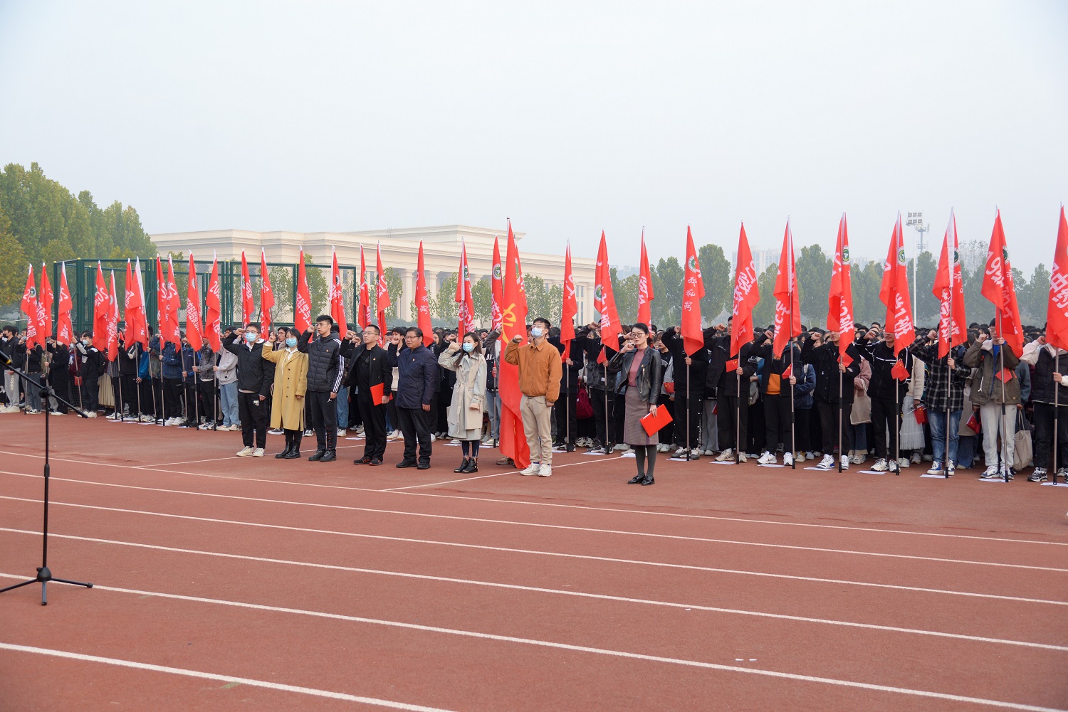 于龙子湖校区田径场举办“强农兴农担使命,奋斗青春创辉煌”升旗仪式。院党委副书记王建忠、副院长殷贵鸿、院团委老师以及全体在校生参加了本次升旗仪式。仪式由院团委书记张倩主持。