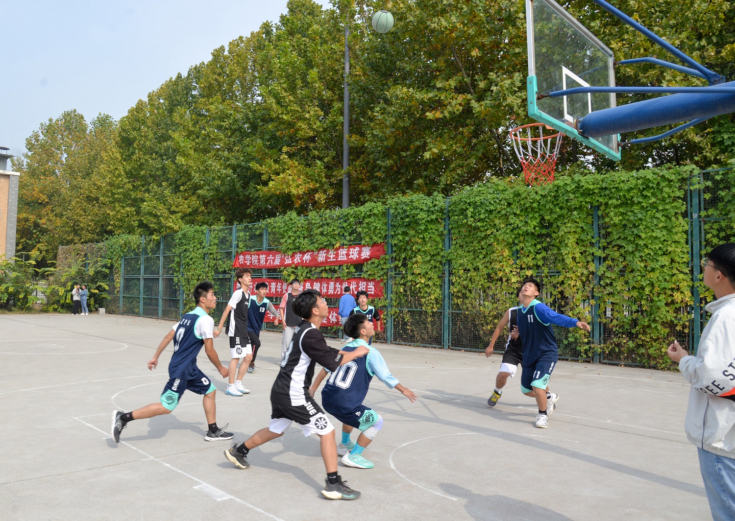第六届“弘农杯”新生篮球赛决赛在龙子湖校区篮球场举行。本届篮球赛由斗鱼直播
