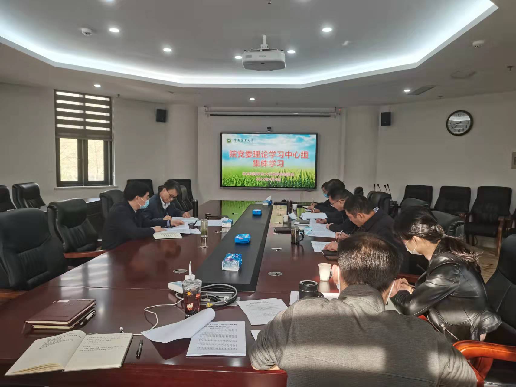 本网讯(通讯员  刘银银)4月4日上午,院党委理论学习中心组在第一实验楼南201会议室召开集体学习会议。全体院领导和院党委委员参加会议,会议由学术副校长、院长王道文主持。
